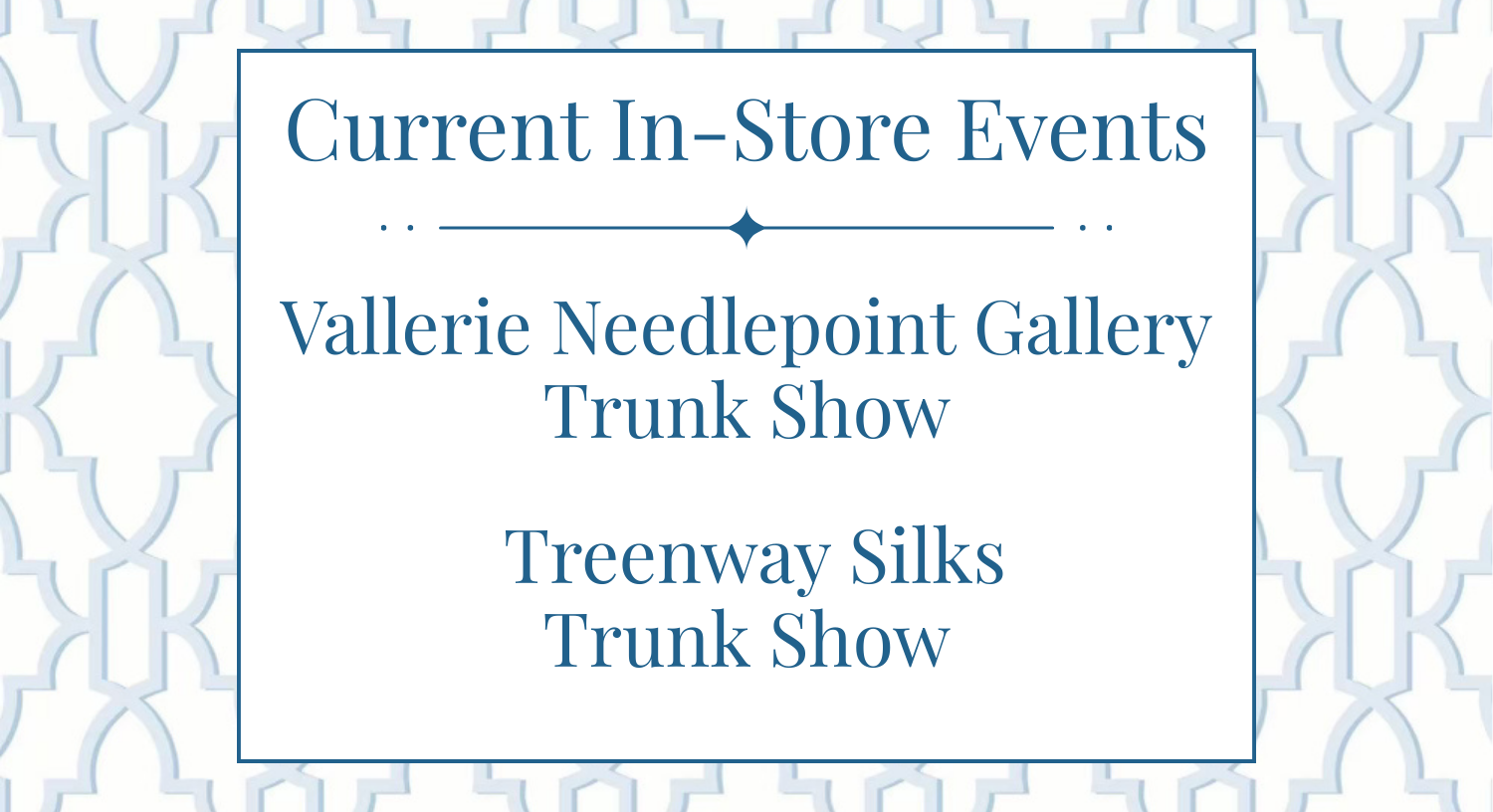 Vallerie Needlepoint Gallery AND Treenway Silks Trunk Show until March 31 〰️